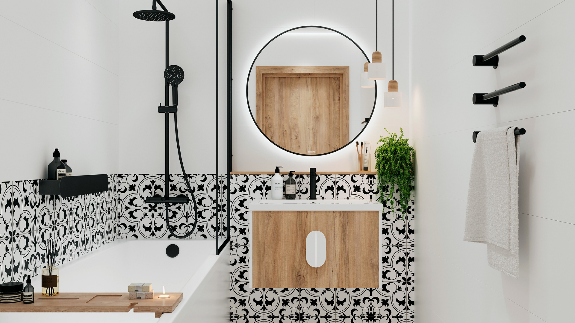 Если вы только присматриваетесь к чёрному и не хотите пока что наполнять им всё пространство, смело инвестируйте в черные матовые смесители и фурнитуру. Это долгосрочное вложение, которое будет актуально и через 10 лет. При выборе заполнения площадей ориентируйтесь на теплые земляные палитры для создания уюта или на светлые воздушные тона для достижения эффекта четкой графичности и чистоты.