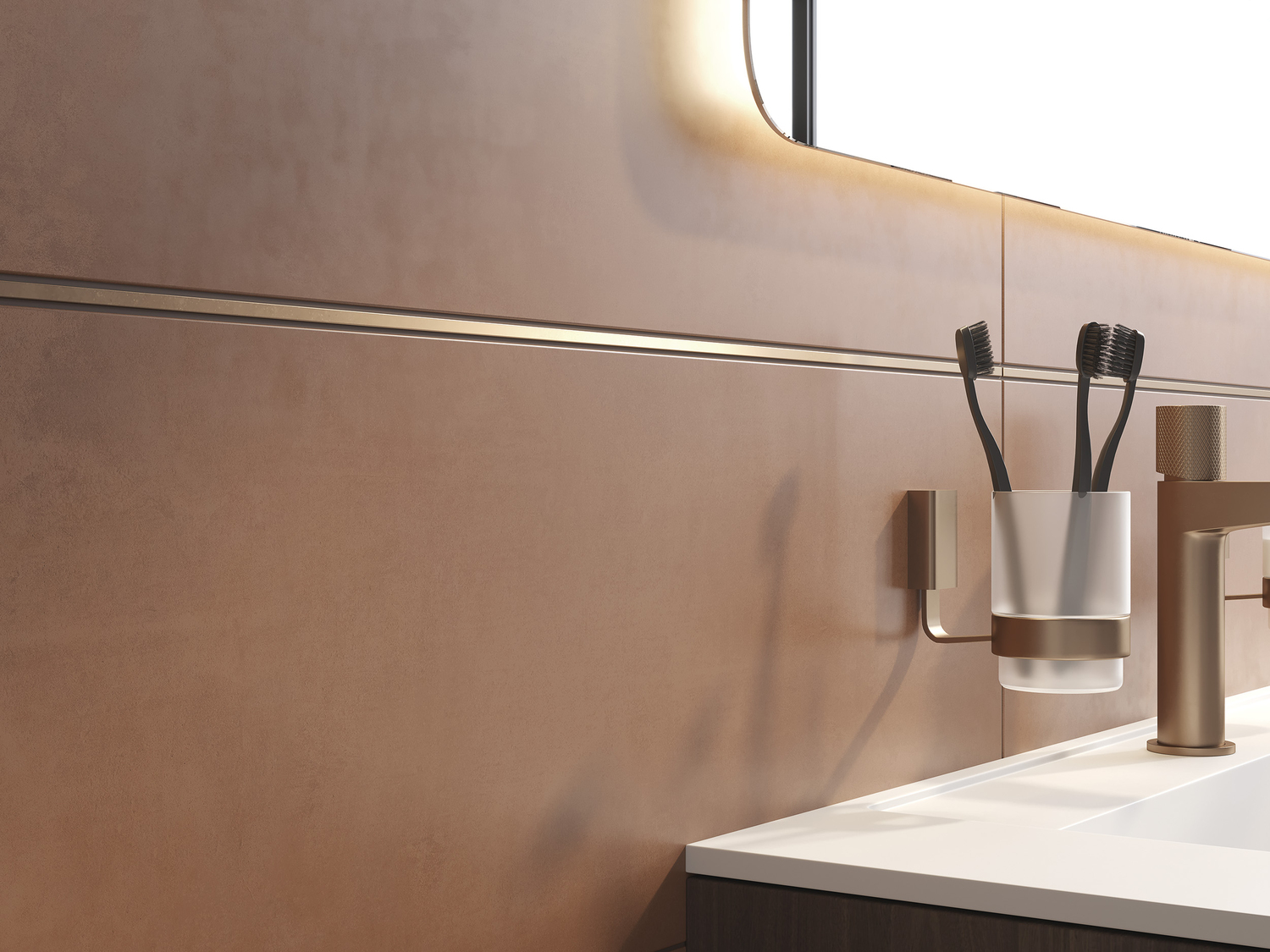 Ремонт в ванной комнате в среднем служит до 10 лет. Вот почему так важно не прогадать с дизайном и предчувствовать тренды. В отличие от плитки, дизайн которой может устареть за 3-5 лет, металлические бордюры универсальны. В их основе минимализм и простота форм, что будет модно во все времена. Кроме того, если в интерьере в качестве украшений выбраны изделия из металла, довольно легко внести новые идеи в задумку с помощью легкосъёмных элементов: кнопки смыва, LED-зеркала или атрибутики в разных оттенках — медном, серебристом или чёрном матовом, тёмно- и светло-золотистом.