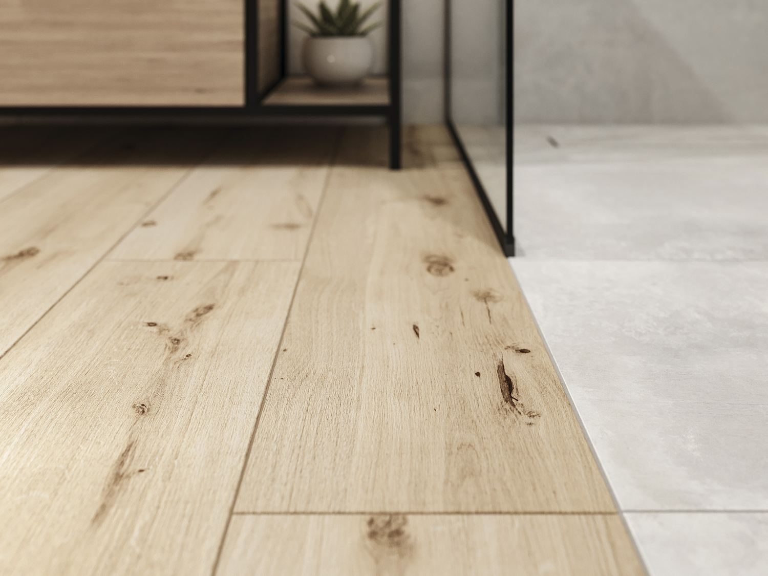 Зелёный цвет отлично сочетается с тёплым коричневым и натуральной текстурой древесного среза. Добиться гармоничного сочетания поможет керамогранит Organicwood.