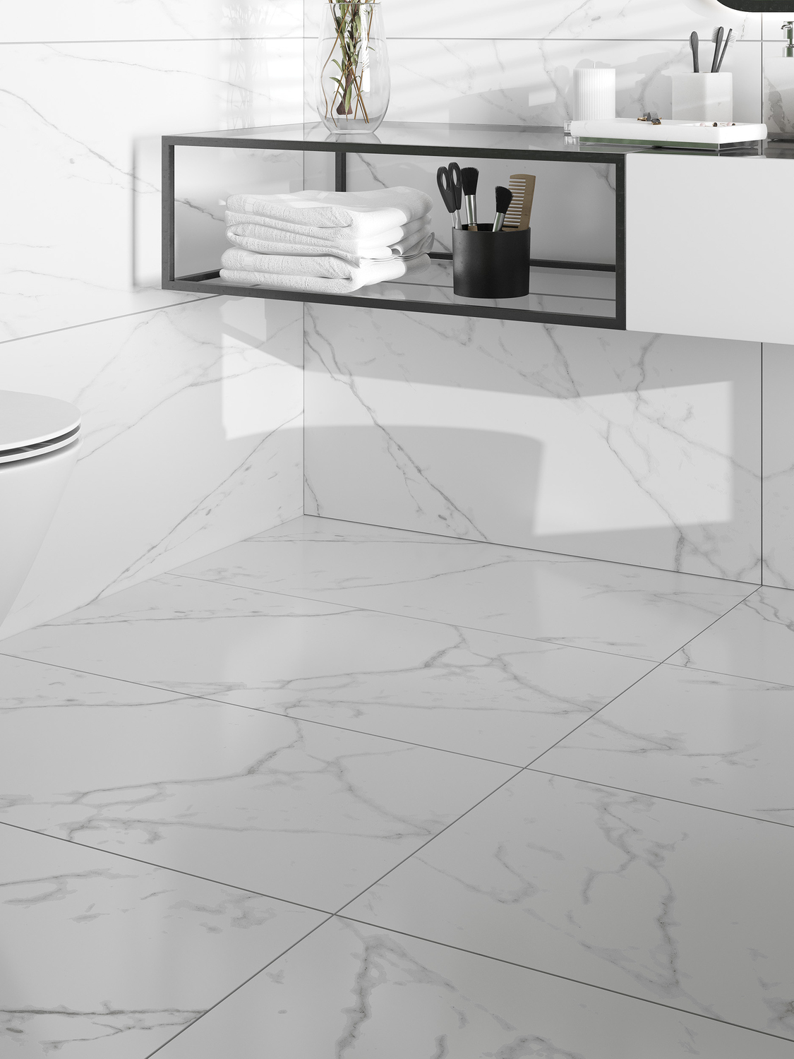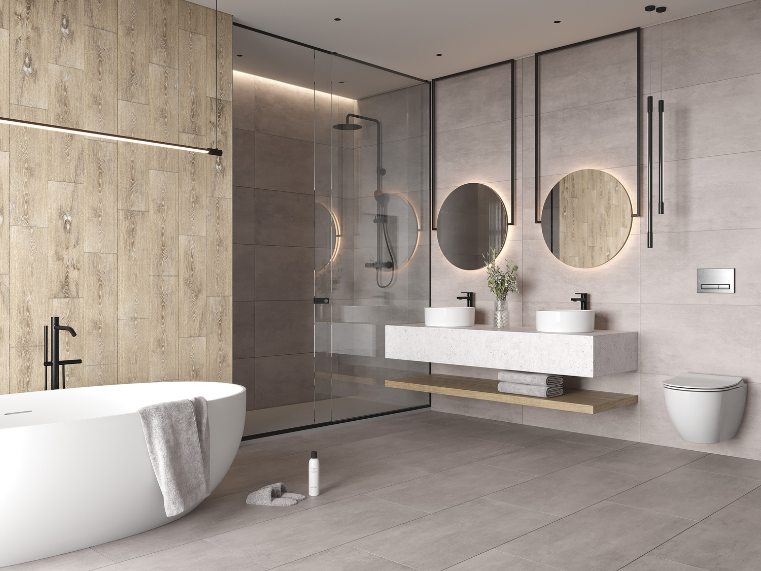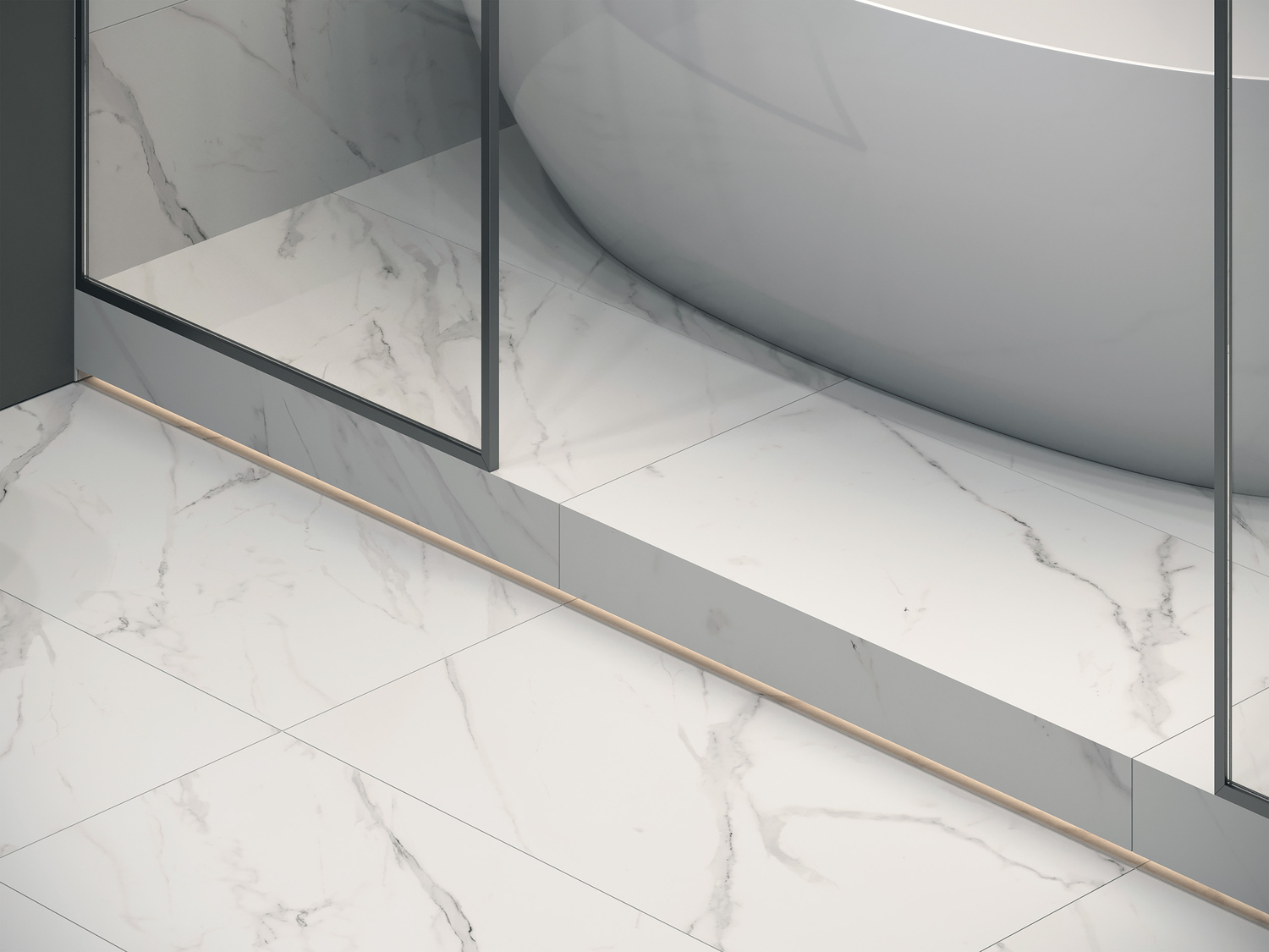 Керамогранит формата 45х90 легко использовать по принципу кратности 30. Таким образом плитку можно уложить с материалами форматов 30х30, 30х60, 60х60, 22х90, 60х120. Всё это — Ваши инструменты для создания стилистически гармоничного пространства во всём доме.