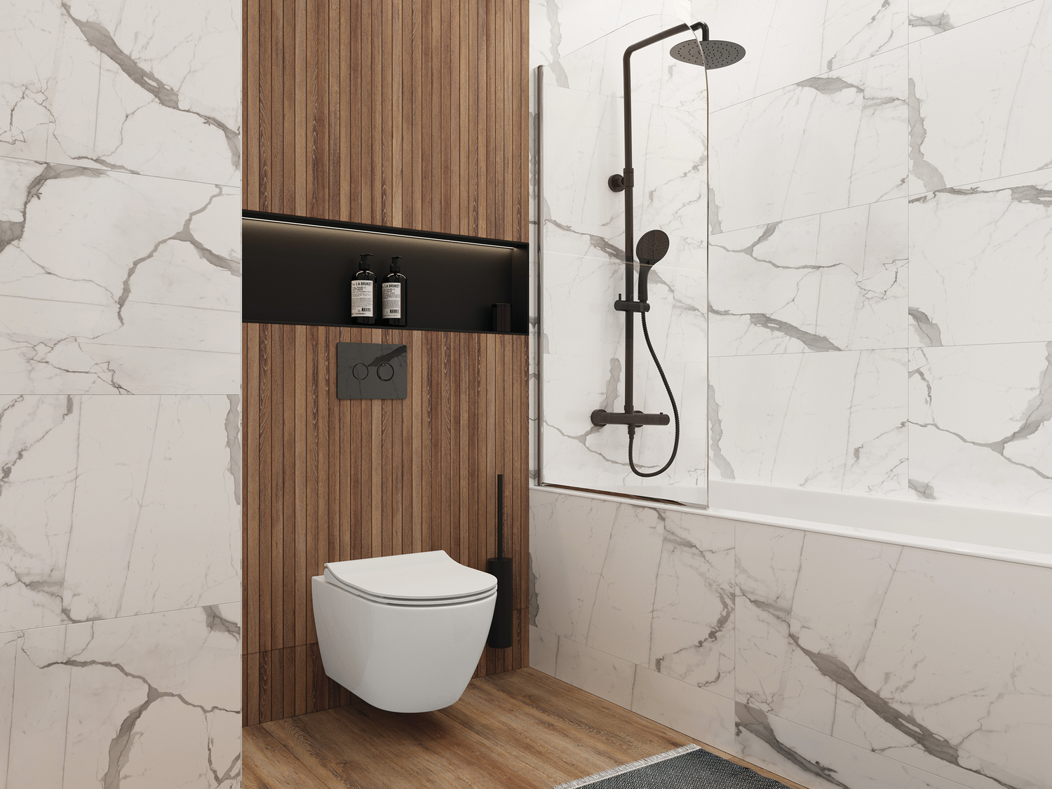 ◆ 45х90 на полу + 30х30 на стене для экономии бюджета