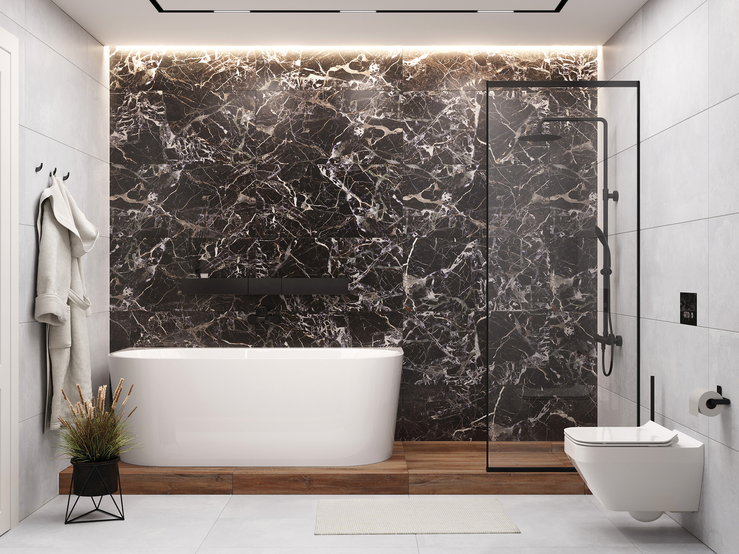 ◆ 45х90 на стене + 30х60 для зонирования на стене + 60х120 на полу
