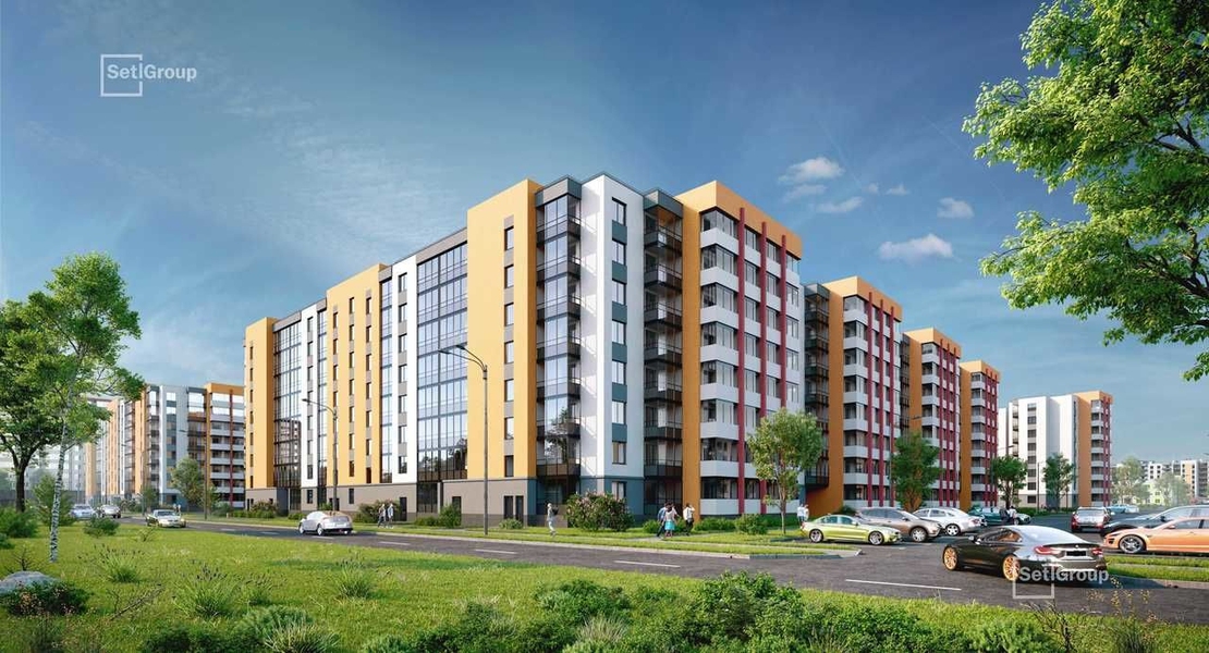Объекты жилого квартала — это в основном дома по 8 и 12 этажей, которые не утяжеляют общий вид комплекса. Поэтому в домах так много света, а вокруг них — зелени. В микрорайоне насчитывается несколько больших парков и прибрежная линия Финского залива. В самом жилом комплексе находится парк отдыха, территория которого приближается к 5 га.